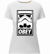 Женская приталенная премиум-футболка собственного производства. Выполнена из качественной ткани (95% хлопок, 5% эластан) — плотная, мягкая и приятная к телу. Принт Obey штурмовик можно нанести на грудь, спину или рукав.