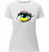 Женская приталенная премиум-футболка собственного производства. Выполнена из качественной ткани (95% хлопок, 5% эластан) — плотная, мягкая и приятная к телу. Принт Око жовто блакитне можно нанести на грудь, спину или рукав.