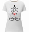 Женская приталенная премиум-футболка собственного производства. Выполнена из качественной ткани (95% хлопок, 5% эластан) — плотная, мягкая и приятная к телу. Принт Падмасана з серцем можно нанести на грудь, спину или рукав.