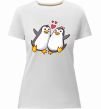 Женская приталенная премиум-футболка собственного производства. Выполнена из качественной ткани (95% хлопок, 5% эластан) — плотная, мягкая и приятная к телу. Принт Пара пингвинов можно нанести на грудь, спину или рукав.
