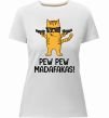 Женская приталенная премиум-футболка собственного производства. Выполнена из качественной ткани (95% хлопок, 5% эластан) — плотная, мягкая и приятная к телу. Принт Pew Pew Cat можно нанести на грудь, спину или рукав.