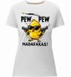 Женская приталенная премиум-футболка собственного производства. Выполнена из качественной ткани (95% хлопок, 5% эластан) — плотная, мягкая и приятная к телу. Принт Pew pew chicken можно нанести на грудь, спину или рукав.