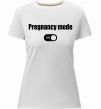 Женская приталенная премиум-футболка собственного производства. Выполнена из качественной ткани (95% хлопок, 5% эластан) — плотная, мягкая и приятная к телу. Принт Pregnancy mode on можно нанести на грудь, спину или рукав.