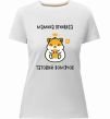Женская приталенная премиум-футболка собственного производства. Выполнена из качественной ткани (95% хлопок, 5% эластан) — плотная, мягкая и приятная к телу. Принт Мамина принцеса татовий хом'ячок можно нанести на грудь, спину или рукав.