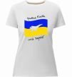 Женская приталенная премиум-футболка собственного производства. Выполнена из качественной ткани (95% хлопок, 5% эластан) — плотная, мягкая и приятная к телу. Принт Привид Києва мій герой можно нанести на грудь, спину или рукав.