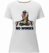 Женская приталенная премиум-футболка собственного производства. Выполнена из качественной ткани (95% хлопок, 5% эластан) — плотная, мягкая и приятная к телу. Принт Рафики no wories hakuna matata можно нанести на грудь, спину или рукав.