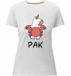 Женская приталенная премиум-футболка собственного производства. Выполнена из качественной ткани (95% хлопок, 5% эластан) — плотная, мягкая и приятная к телу. Принт Рак єдиноріг можно нанести на грудь, спину или рукав.