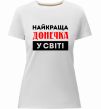 Женская приталенная премиум-футболка собственного производства. Выполнена из качественной ткани (95% хлопок, 5% эластан) — плотная, мягкая и приятная к телу. Принт Найкраща донечка у світі можно нанести на грудь, спину или рукав.