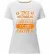 Женская приталенная премиум-футболка собственного производства. Выполнена из качественной ткани (95% хлопок, 5% эластан) — плотная, мягкая и приятная к телу. Принт Так виглядає найкраща у світі сестра можно нанести на грудь, спину или рукав.