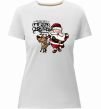 Женская приталенная премиум-футболка собственного производства. Выполнена из качественной ткани (95% хлопок, 5% эластан) — плотная, мягкая и приятная к телу. Принт Санта з оленем можно нанести на грудь, спину или рукав.