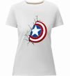 Женская приталенная премиум-футболка собственного производства. Выполнена из качественной ткани (95% хлопок, 5% эластан) — плотная, мягкая и приятная к телу. Принт Щит Капітана Америка можно нанести на грудь, спину или рукав.