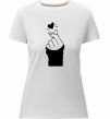 Женская приталенная премиум-футболка собственного производства. Выполнена из качественной ткани (95% хлопок, 5% эластан) — плотная, мягкая и приятная к телу. Принт Седце із пальців можно нанести на грудь, спину или рукав.