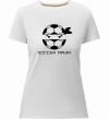 Женская приталенная премиум-футболка собственного производства. Выполнена из качественной ткани (95% хлопок, 5% эластан) — плотная, мягкая и приятная к телу. Принт Soccer ninja можно нанести на грудь, спину или рукав.