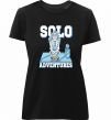 Женская приталенная премиум-футболка собственного производства. Выполнена из качественной ткани (95% хлопок, 5% эластан) — плотная, мягкая и приятная к телу. Принт Solo adventures можно нанести на грудь, спину или рукав.