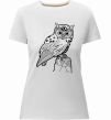 Женская приталенная премиум-футболка собственного производства. Выполнена из качественной ткани (95% хлопок, 5% эластан) — плотная, мягкая и приятная к телу. Принт Сова на скелі можно нанести на грудь, спину или рукав.