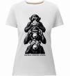Женская приталенная премиум-футболка собственного производства. Выполнена из качественной ткани (95% хлопок, 5% эластан) — плотная, мягкая и приятная к телу. Принт Speak hear see no можно нанести на грудь, спину или рукав.