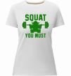 Женская приталенная премиум-футболка собственного производства. Выполнена из качественной ткани (95% хлопок, 5% эластан) — плотная, мягкая и приятная к телу. Принт Squat you must можно нанести на грудь, спину или рукав.