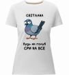 Женская приталенная премиум-футболка собственного производства. Выполнена из качественной ткани (95% хлопок, 5% эластан) — плотная, мягкая и приятная к телу. Принт Світлана будь як голуб можно нанести на грудь, спину или рукав.