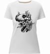 Женская приталенная премиум-футболка собственного производства. Выполнена из качественной ткани (95% хлопок, 5% эластан) — плотная, мягкая и приятная к телу. Принт T-Rex skull in flowers можно нанести на грудь, спину или рукав.