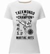 Женская приталенная премиум-футболка собственного производства. Выполнена из качественной ткани (95% хлопок, 5% эластан) — плотная, мягкая и приятная к телу. Принт Taekwondo World можно нанести на грудь, спину или рукав.