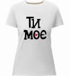 Женская приталенная премиум-футболка собственного производства. Выполнена из качественной ткани (95% хлопок, 5% эластан) — плотная, мягкая и приятная к телу. Принт Ти моє можно нанести на грудь, спину или рукав.