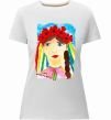Женская приталенная премиум-футболка собственного производства. Выполнена из качественной ткани (95% хлопок, 5% эластан) — плотная, мягкая и приятная к телу. Принт Українка у вінку можно нанести на грудь, спину или рукав.