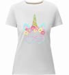 Женская приталенная премиум-футболка собственного производства. Выполнена из качественной ткани (95% хлопок, 5% эластан) — плотная, мягкая и приятная к телу. Принт Unicorn in glasses можно нанести на грудь, спину или рукав.