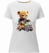 Женская приталенная премиум-футболка собственного производства. Выполнена из качественной ткани (95% хлопок, 5% эластан) — плотная, мягкая и приятная к телу. Принт Ведмедик на машинці можно нанести на грудь, спину или рукав.