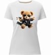 Женская приталенная премиум-футболка собственного производства. Выполнена из качественной ткани (95% хлопок, 5% эластан) — плотная, мягкая и приятная к телу. Принт Ведмедик з пістолетом можно нанести на грудь, спину или рукав.