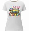 Женская приталенная премиум-футболка собственного производства. Выполнена из качественной ткани (95% хлопок, 5% эластан) — плотная, мягкая и приятная к телу. Принт Великодні міньйони можно нанести на грудь, спину или рукав.