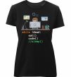 Женская приталенная премиум-футболка собственного производства. Выполнена из качественной ткани (95% хлопок, 5% эластан) — плотная, мягкая и приятная к телу. Принт While !dead eat code можно нанести на грудь, спину или рукав.