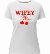 Женская приталенная премиум-футболка собственного производства. Выполнена из качественной ткани (95% хлопок, 5% эластан) — плотная, мягкая и приятная к телу. Принт Wifey chery можно нанести на грудь, спину или рукав.