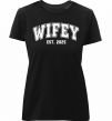 Женская приталенная премиум-футболка собственного производства. Выполнена из качественной ткани (95% хлопок, 5% эластан) — плотная, мягкая и приятная к телу. Принт Wifey est можно нанести на грудь, спину или рукав.