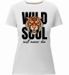 Женская приталенная премиум-футболка собственного производства. Выполнена из качественной ткани (95% хлопок, 5% эластан) — плотная, мягкая и приятная к телу. Принт Wild soul можно нанести на грудь, спину или рукав.