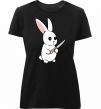 Женская приталенная премиум-футболка собственного производства. Выполнена из качественной ткани (95% хлопок, 5% эластан) — плотная, мягкая и приятная к телу. Принт Зайчик з ножем можно нанести на грудь, спину или рукав.