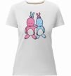 Женская приталенная премиум-футболка собственного производства. Выполнена из качественной ткани (95% хлопок, 5% эластан) — плотная, мягкая и приятная к телу. Принт PASTEL RABBITS можно нанести на грудь, спину или рукав.