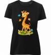 Женская приталенная премиум-футболка собственного производства. Выполнена из качественной ткани (95% хлопок, 5% эластан) — плотная, мягкая и приятная к телу. Принт Жирафа з метеликами можно нанести на грудь, спину или рукав.
