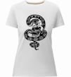 Женская приталенная премиум-футболка собственного производства. Выполнена из качественной ткани (95% хлопок, 5% эластан) — плотная, мягкая и приятная к телу. Принт Змія з візерунком і череп можно нанести на грудь, спину или рукав.