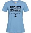 Футболка приталенного кроя с боковыми швами. Ткань 100% хлопок - мягкая и приятная на ощупь. После стирки, при правильном уходе, футболка не растягивается, не садится и не линяет. Нанести принт Project manager на футболку можно на грудь, на спину, на рукав. Цвет принта можно заказать любой!
