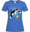 Футболка приталенного кроя с боковыми швами. Ткань 100% хлопок - мягкая и приятная на ощупь. После стирки, при правильном уходе, футболка не растягивается, не садится и не линяет. Нанести принт Сильвестр та Твіті на футболку можно на грудь, на спину, на рукав. Цвет принта можно заказать любой!