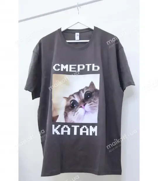 Футболка приталенного кроя с боковыми швами. Ткань 100% хлопок - мягкая и приятная на ощупь. После стирки, при правильном уходе, футболка не растягивается, не садится и не линяет. Нанести принт Смерть катам на футболку можно на грудь, на спину, на рукав. Цвет принта можно заказать любой!